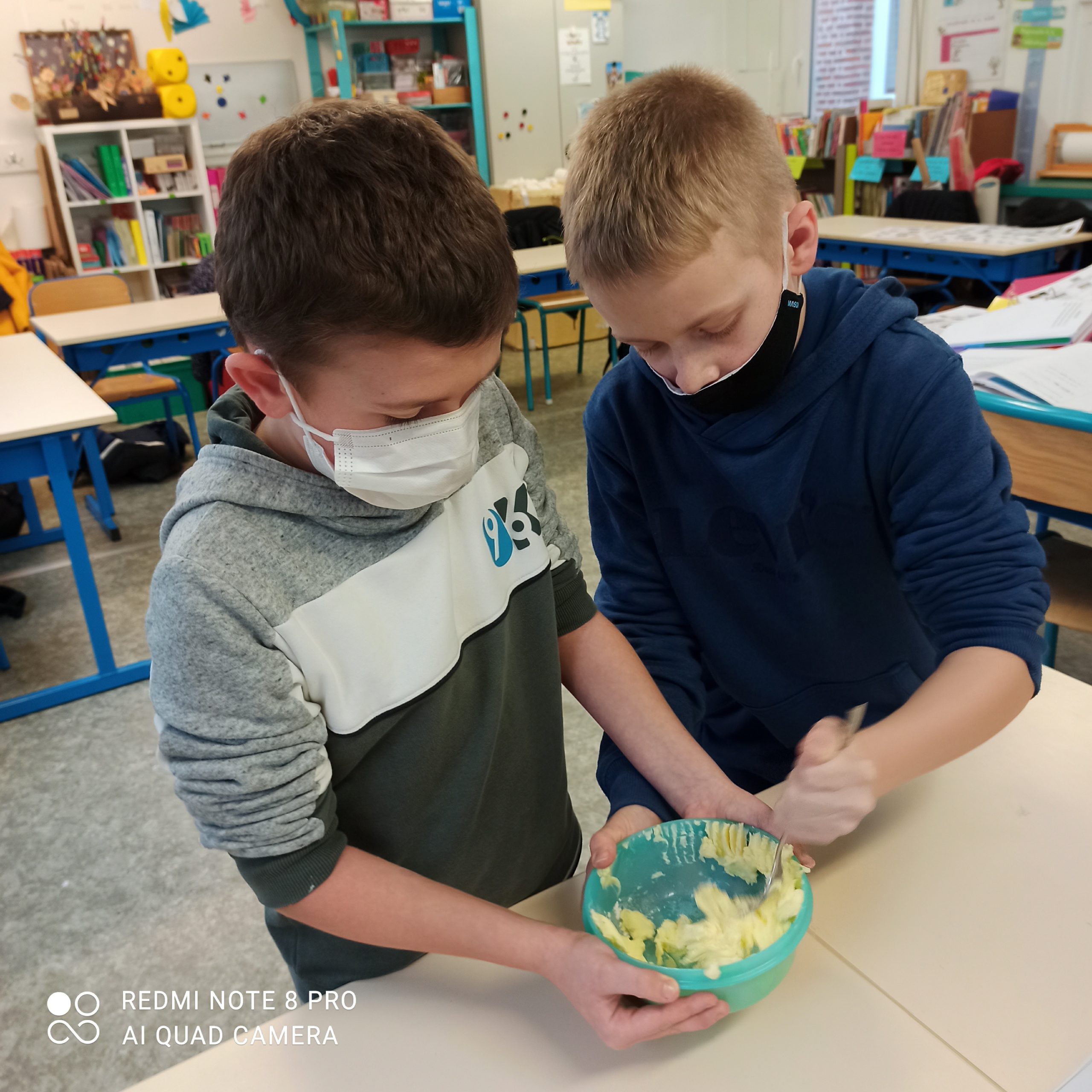Chaque groupe s’est appliqué à la lecture de la recette pour réaliser sa galette.